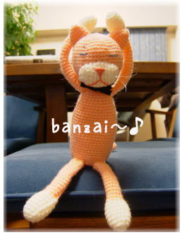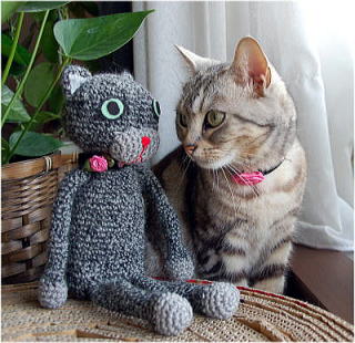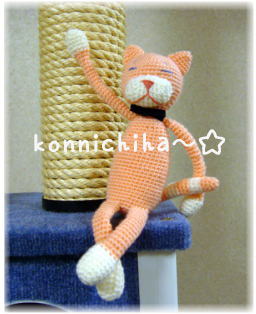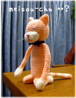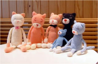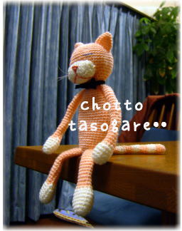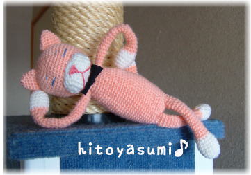 このあみぐるみ猫を考案されたのは 『あみぐるみの猫みせます:愉快な写 真と作り方』の ねこやまさんです。 この「だらだらあみぐるみ猫」はまいどくんって言います。 サイトでは、たそがれるまいどくんが登場していて、 作り方もやさしく解説されてます。 他にも229匹のあみねこたちが紹介されていてとっても素敵です。 |