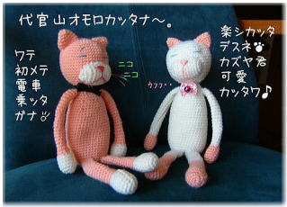 あみねこ集会に参加♪ ・ 4月3日代官山オフ会であみねこ集会 が開催 ・ プチムッシュ氏・プチュールちゃんが 参加 ・ うにゃママもあみねこを伝授してくれた イオン坊さん、めわさんとの初対面に 感動!! |